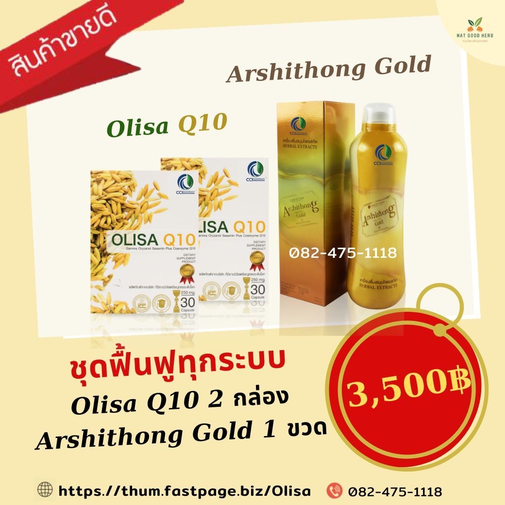 Olisa= 2 กล่อง /30 แคปซูล ราคา 950 บาทอาชีตองโกลด์=1 ขวด /750 ml /ราคา 1600 บาท วิธีการทานแบบรักษาอาการเร่งด่วนOlisa Q10 ทานวันละ 2 มื้อ ๆ ละ 2 แคปซูล เช้า,ก่อนนอน (ก่อนหรือหลังอาหารได้ผลดีทั้งคู่)